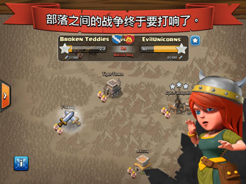 部落间战争!在战争中碾碎敌人的部落吧!率领您的部落从胜利走向胜利!部落冲突(Clash of Clans) 是一款划时代的战争策略游戏。快来建设您的村庄,训练您的军队和与来自世界各地的数千万玩家一起战斗吧!